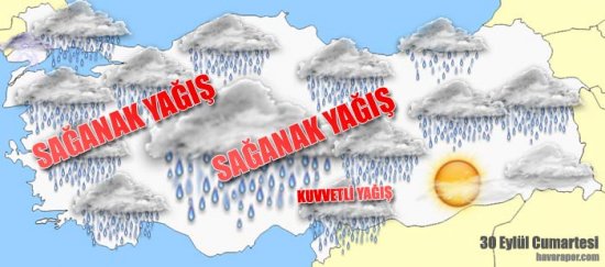 Meteoroloji Genel Müdürlüğü tarafından yapılan açıklamaya göre 30 Eylül Cumartesi günü Hatay, Osmaniye ve Adana'nın doğu kesimleri kuvvetli yağışın etkisi altında kalacak.