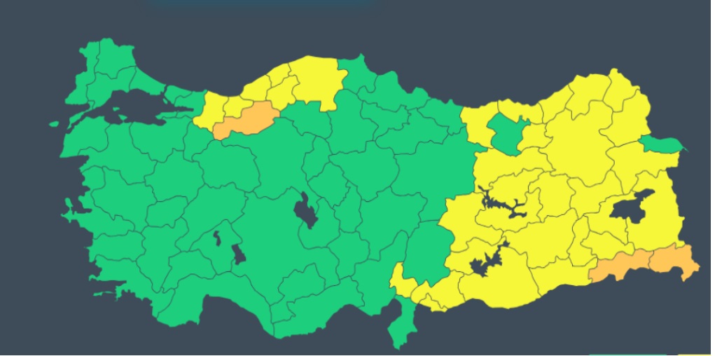 Meteoroloji Genel Müdürlüğü Bolu, Şırnak ve Hakkari illerimizde bugün meydana gelecek olan yoğun kar yağışı nedeni ile turuncu seviyede uyarı yaparken birçok ilimiz için de sarı uyarı yayınladı.